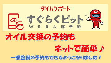 すぐらくピット(Web入庫予約)からオイル交換等の一般入庫の予約ができるようになりました!